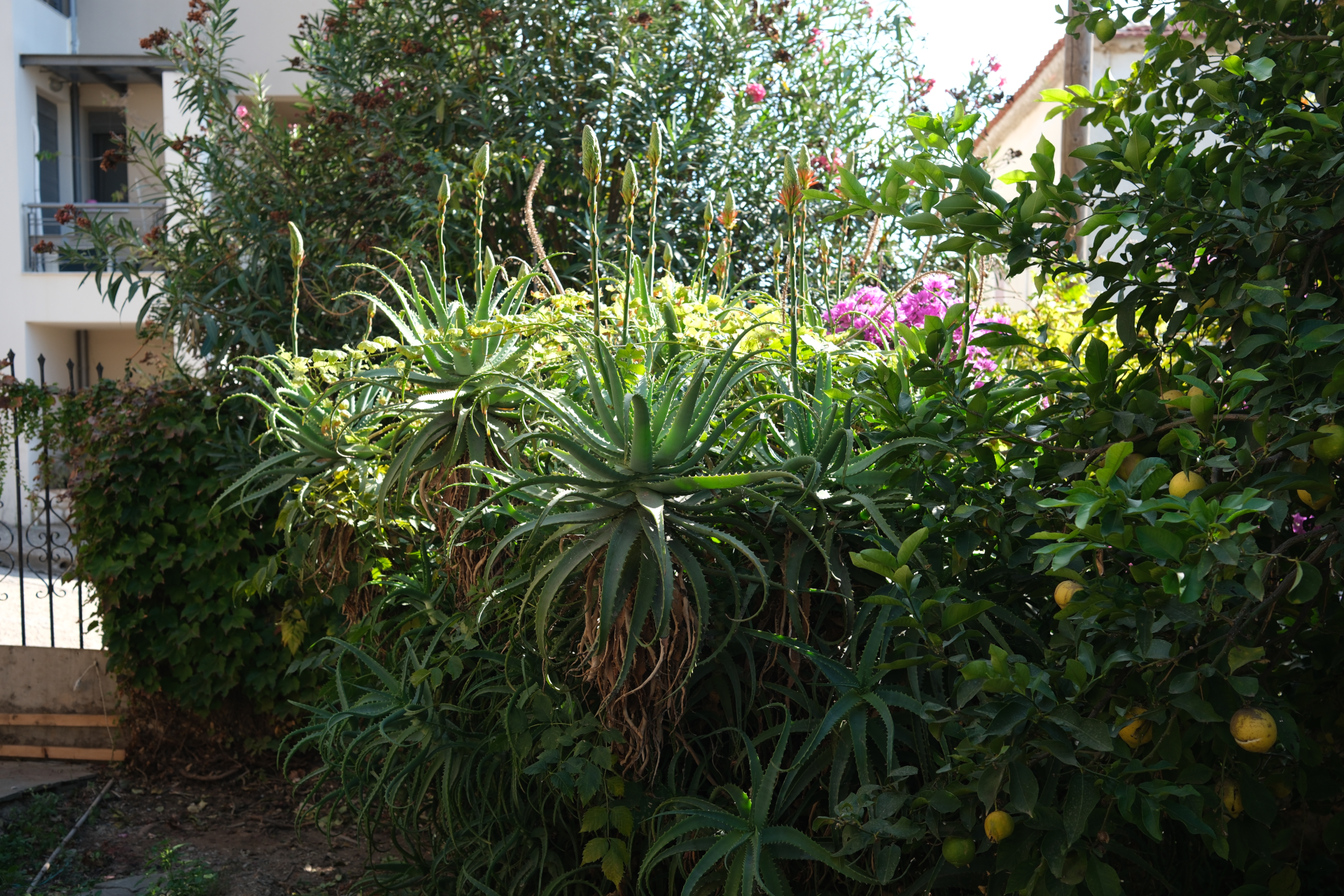 Der eigene Zitronenbaum liefert ganzjährig frische Zitronen. An der Pergola ranken Weintrauben (im Sommer zu ernten).